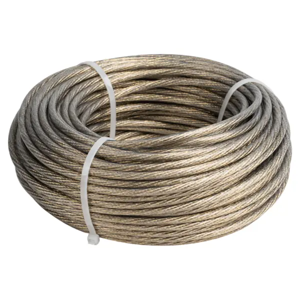 **Трос стальной Tech-Krep** — это многопроволочный стальной трос, предназначенный для подъема и перемещения грузов в промышленных и бытовых целях. Он широко используется в строительстве и других областях, где требуется надежное крепление и натяжение. Предназначен для создания растяжек мачт антенн и труб, монтажа перетяжек проводов и кабелей, подвешивания рекламных и декоративных конструкций, работы с лебедками и тельферами, прочих задач, требующих надежного стального троса. ### Особенности: - размеры: диаметр троса — 4/6 мм, длина — 40 м; - изготовлен из оцинкованной стали с цинковым покрытием; - обеспечивает повышенную гибкость и устойчивость к изломам; - соответствует стандарту DIN 3055, что подтверждает его качество и надежность.