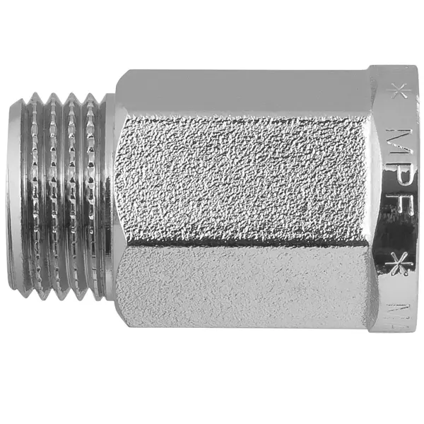 **Удлинитель шестигранный MPF** — это соединительный элемент трубопровода, который используется для удлинения соединений трубопроводов питьевого водоснабжения и инженерных коммуникаций. Удлинитель изготовлен из никелированной латуни, максимальная температура применения составляет 100 °C, номинальное давление — 6 бар. ### Особенности: - имеет наружную и внутреннюю присоединительную резьбу 1/2х30’; - оснащен гранями на корпусе для удобного монтажа.