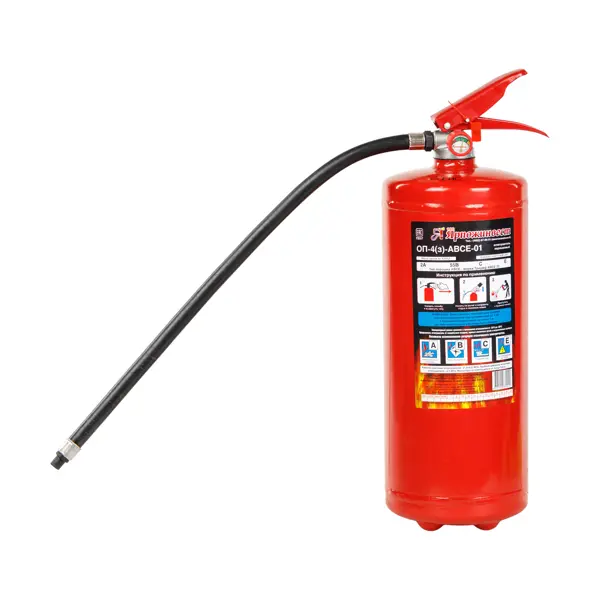 "Мощный переносной огнетушитель для тушения пожаров классов А, В, С, Е. Рассчитан на защиту жилых, офисных, промышленных объектов, складов, транспорта и общественных зданий. ОП-4 (З) АВСЕ содержит 4 кг порошка, который подается под давлением 1,4 МПа. Гарантирует длину струи до 3 м и продолжительность работы 10 секунд. Рабочий диапазон температур: от -50°C до +50°C. ### Преимущества: - Перезаряжаемая конструкция, срок службы 10 лет. - Индикатор давления для контроля работоспособности. - Подходят для комплектации пожарных щитов и шкафов. - Универсальность: подходит для тушения электрооборудования и горючих материалов."