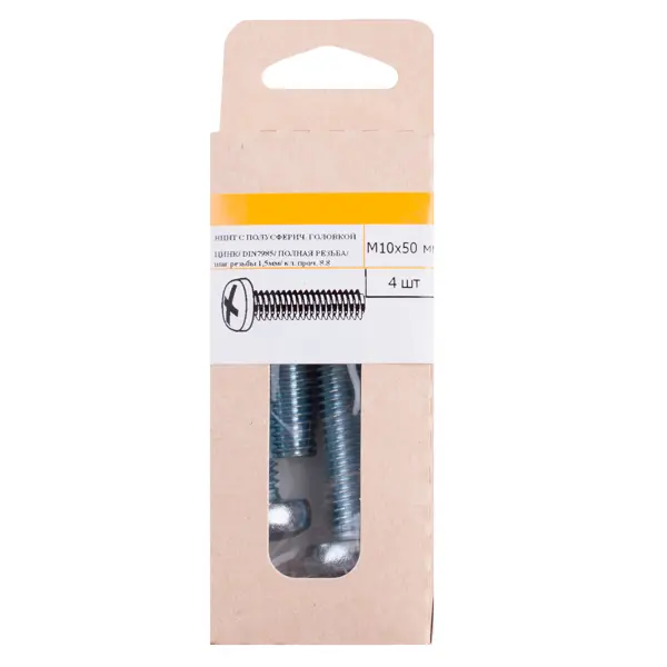 **Винт** представляет собой полнорезьбовой крепежный элемент с полукруглой головкой и внутренним шестигранным приводом. Это высокопрочное изделие, изготовленное из оцинкованной стали, соответствующее требованиям технического стандарта ISO 7380. Предназначен для создания резьбовых соединений при монтажных работах, выполнения сборочных операций, крепления элементов различных конструкций, создания соединений, требующие приложения высокого момента силы для затяжки. ### Особенности: - полнорезьбовая конструкция обеспечивает надежное соединение; - полукруглая форма головки обеспечивает оптимальное распределение нагрузки; - внутренний шестигранник позволяет создавать соединения с высоким моментом затяжки; - оцинкованное покрытие защищает от коррозии и повышает механическую прочность; - плоская опорная поверхность головки обеспечивает плотное прилегание к рабочей поверхности; - стандарт — DIN 7985; - размеры: 10 x 50 мм; - в упаковке находится 4 шт.