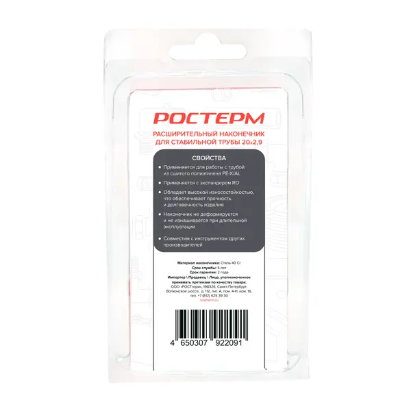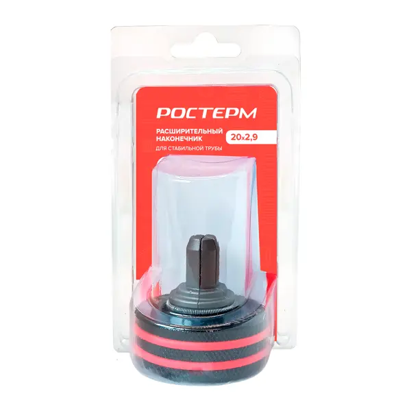 **Расширительные насадки Ростерм** предназначены для применения с экспандером из набора механического/гидравлического инструмента Ростерм. **Расширительные насадки для труб Ростерм Stabil** применяются при монтаже надвижных гильз. Они позволяют быстро расширить трубу для легкого ввода штуцера фитинга. **Насадки для экспандера Ростерм** диаметром 20 мм предназначены для труб Ростерм Stabil 20х2.9 мм. **Важно!** при монтаже надвижных гильз категорически запрещается отрезать трубы из сшитого полиэтилена при помощи ножовки. Для этого необходимо использовать специальные ножницы Ростерм для резки труб.