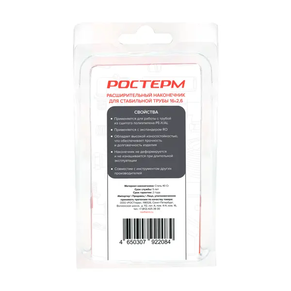 **Расширительные насадки Ростерм** предназначены для применения с экспандером из набора механического/гидравлического инструмента Ростерм. **Расширительные насадки для труб Ростерм Stabil** применяются при монтаже надвижных гильз. Они позволяют быстро расширить трубу для легкого ввода штуцера фитинга. **Насадки для экспандера Ростерм** диаметром 16 мм предназначены для труб Ростерм Stabil 16.2х2.6 мм. **Важно!** при монтаже надвижных гильз категорически запрещается отрезать трубы из сшитого полиэтилена при помощи ножовки. Для этого необходимо использовать специальные ножницы Ростерм для резки труб.