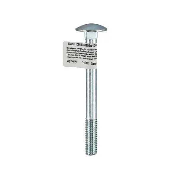 **Болт** — это специализированный метиз, предназначенный для скрепления мебельных элементов, а также других деревянных, фанерных и некоторых пластиковых конструкций. Этот болт соответствует стандарту DIN 603, что гарантирует его качество и надежность. Основное назначение: скрепление мебельных элементов при помощи гайки с шайбой, сборка бытовых, офисных и промышленных предметов мебели, использование в приборостроении и машиностроении, применение в строительных работах для крепления деревянных и фанерных конструкций. Возможно использование для скрепления с металлическими основаниями. ### Особенности: