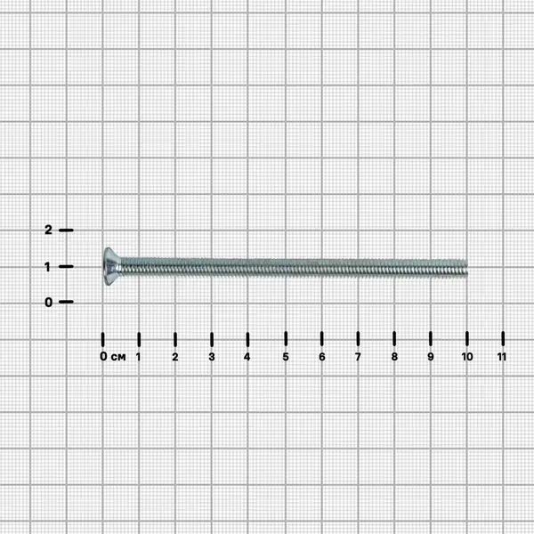 **Винт** — это метрический крепежный элемент с потайной головкой и крестообразным шлицем (Phillips). Он изготовлен из углеродистой стали и покрыт цинком для защиты от коррозии. Предназначен для соединения металлических и неметаллических элементов конструкций, выполнения потайных соединений, монтажа деталей в производственных и строительных работах, использования в механизмах и оборудовании, крепления элементов, требующих скрытого монтажа. Области применения: строительство, производство, монтаж металлоконструкций, сборка оборудования, машиностроение, автомобильная промышленность, электроника и приборостроение. ### Особенности: - потайная головка позволяет создавать скрытое соединение; - крестообразный шлиц Phillips обеспечивает удобный монтаж с помощью стандартных отверток; - цинковое покрытие защищает от коррозии и увеличивает срок службы; - метрическая резьба с шагом 1 мм обеспечивает надежное соединение; - специальная форма головки предотвращает выступание над поверхностью после уст