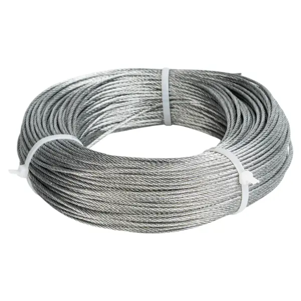 **Трос стальной Tech-Krep** — это многопроволочный стальной трос, предназначенный для подъема и перемещения грузов в промышленных и бытовых целях. Он широко используется в строительстве и других областях, где требуется надежное крепление и натяжение. Предназначен для создания растяжек мачт антенн и труб, монтажа перетяжек проводов и кабелей, подвешивания рекламных и декоративных конструкций, работы с лебедками и тельферами, прочих задач, требующих надежного стального троса. ### Особенности: - размеры: диаметр троса — 1 мм, длина — 100 м; - изготовлен из оцинкованной стали с цинковым покрытием; - обеспечивает повышенную гибкость и устойчивость к изломам; - соответствует стандарту DIN 3055, что подтверждает его качество и надежность.