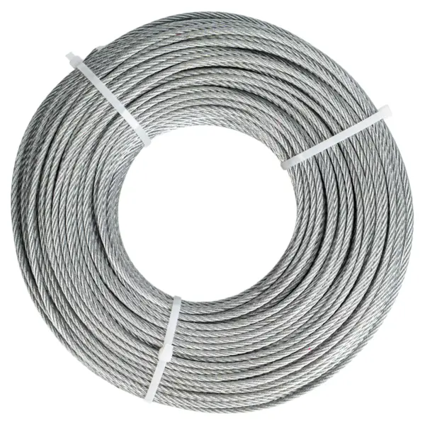 **Трос стальной Tech-Krep** — это многопроволочный стальной трос, предназначенный для подъема и перемещения грузов в промышленных и бытовых целях. Он широко используется в строительстве и других областях, где требуется надежное крепление и натяжение. Предназначен для создания растяжек мачт антенн и труб, монтажа перетяжек проводов и кабелей, подвешивания рекламных и декоративных конструкций, работы с лебедками и тельферами, прочих задач, требующих надежного стального троса. ### Особенности: - размеры: диаметр троса — 4 мм, длина — 100 м; - изготовлен из оцинкованной стали с цинковым покрытием; - обеспечивает повышенную гибкость и устойчивость к изломам; - соответствует стандарту DIN 3055, что подтверждает его качество и надежность.