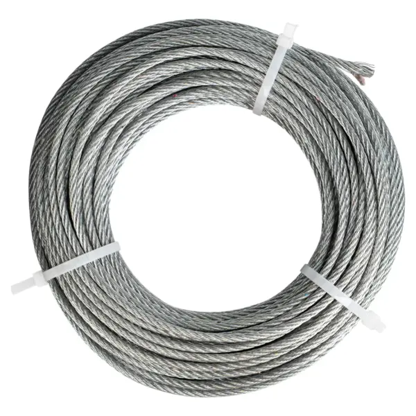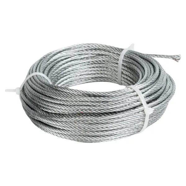 **Трос стальной Tech-Krep** — это многопроволочный стальной трос, предназначенный для подъема и перемещения грузов в промышленных и бытовых целях. Он широко используется в строительстве и других областях, где требуется надежное крепление и натяжение. Предназначен для создания растяжек мачт антенн и труб, монтажа перетяжек проводов и кабелей, подвешивания рекламных и декоративных конструкций, работы с лебедками и тельферами, прочих задач, требующих надежного стального троса. ### Особенности: - размеры: диаметр троса — 4 мм, длина — 25 м; - изготовлен из оцинкованной стали с цинковым покрытием; - обеспечивает повышенную гибкость и устойчивость к изломам; - соответствует стандарту DIN 3055, что подтверждает его качество и надежность.