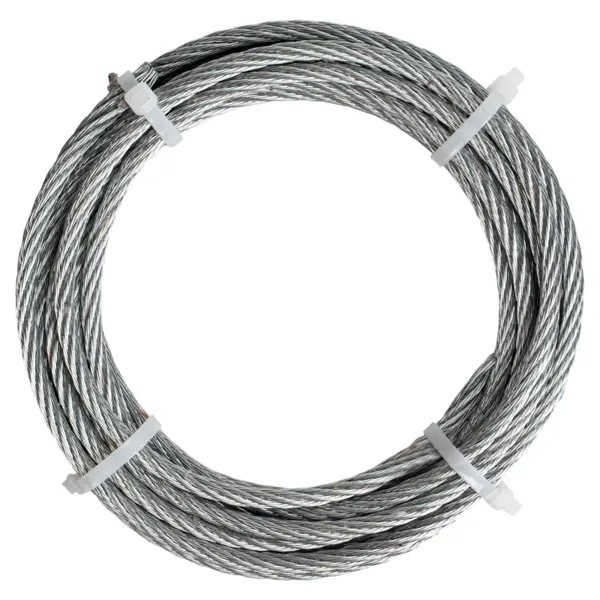 **Трос стальной Tech-Krep** — это многопроволочный стальной трос, предназначенный для подъема и перемещения грузов в промышленных и бытовых целях. Он широко используется в строительстве и других областях, где требуется надежное крепление и натяжение. Предназначен для создания растяжек мачт антенн и труб, монтажа перетяжек проводов и кабелей, подвешивания рекламных и декоративных конструкций, работы с лебедками и тельферами, прочих задач, требующих надежного стального троса. ### Особенности: - размеры: диаметр троса — 6 мм, длина — 5 м; - изготовлен из оцинкованной стали с цинковым покрытием; - обеспечивает повышенную гибкость и устойчивость к изломам; - соответствует стандарту DIN 3055, что подтверждает его качество и надежность.