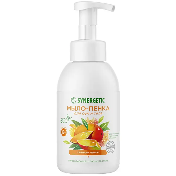 Мыло-пенка для рук Synergetic гипоаллергенная Сочное манго 500 мл