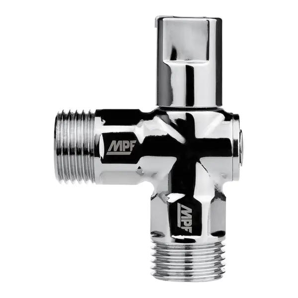 **Кран шаровой угловой MPF PN24** — это вид запорной арматуры, предназначенный для использования в трубопроводных системах. Он используется для полного перекрытия или открытия потока рабочей среды, обеспечивая надежное управление системой водоснабжения или отопления. Кран применяется в системах водоснабжения для управления потоками воды, подключаемых к бытовой технике. ### Особенности: - шаровой угловой кран имеет простую конструкцию и высокую надежность в эксплуатации; - материал корпуса — латунь, что делает кран устойчивым к коррозии и долговечным; - диаметр резьбы — 1/2" (НР) позволяет использовать кран в системах с соответствующими размерами труб; - максимальное давление — 16 бар подходит для большинства бытовых и промышленных систем; - максимальная рабочая температура — 90°C, что позволяет использовать кран в системах с повышенной температурой; - ручка в форме флажка обеспечивает удобство и простоту управления краном. **БЕРЕЖНО К ЛЮДЯМ, БЕРЕЖНО К ПРИРОДЕ** - Этот товар имеет бе