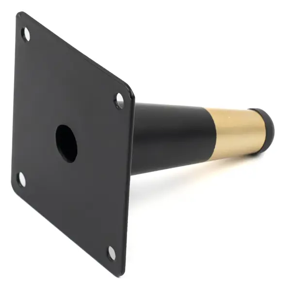 **Ножка мебельная Palladium** — это опорный элемент для мебели, обеспечивающий устойчивость и высоту расположения мебельного изделия от пола. Является важной частью конструкции любой мебели. Используется для установки столов и столешниц, в качестве опоры для тумб и комодов, основания для шкафов-купе, подставки для полок, создания регулируемого уровня мебели. ### Особенности: - размеры: 32 х 100 х 32 мм; - материал — железо; - цвет — черно-золотой; - тип — прямоугольная; - допустимая нагрузка — до 120 кг на одну опору.