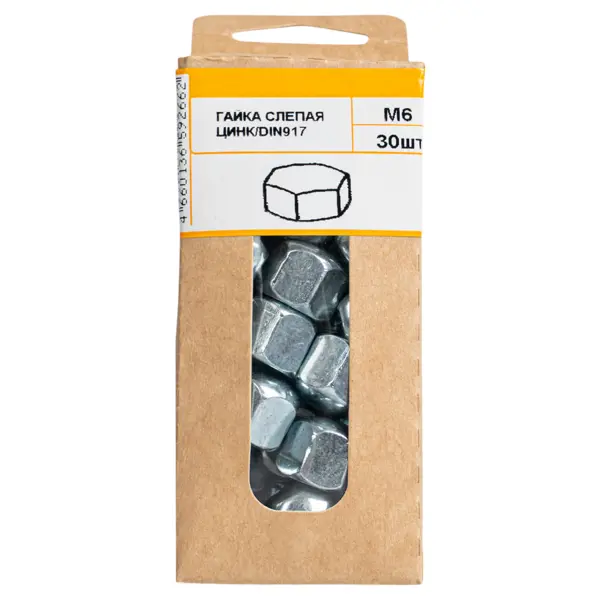 **Гайка DIN 917** — это крепежный элемент, который используется для надежного соединения различных деталей и конструкций. Она относится к категории шестигранных колпачковых гаек и обладает рядом специфических характеристик, делающих ее универсальной и востребованной в различных областях. ### Особенности: - диаметр резьбы — М6; - изготовлена из оцинкованной стали; - отсутствие сквозного отверстия делает гайку более безопасной в эксплуатации; - прочность соединения обеспечивается благодаря дополнительной резьбе на внутренней поверхности; - гладкая поверхность и полукруглая форма делают гайку подходящей для декоративных целей; - закругленный наружный торец снижает риск травм при монтаже.