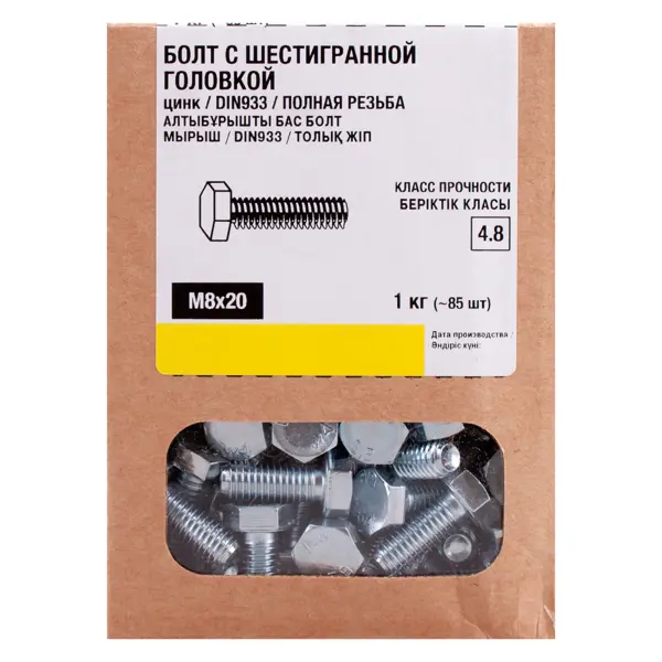 **Болт** — это специализированный метиз, предназначенный для скрепления мебельных элементов, а также других деревянных, фанерных и некоторых пластиковых конструкций. Этот болт соответствует стандарту DIN 933, что гарантирует его качество и надежность. Основное назначение: скрепление мебельных элементов при помощи гайки с шайбой, сборка бытовых, офисных и промышленных предметов мебели, использование в приборостроении и машиностроении, применение в строительных работах для крепления деревянных и фанерных конструкций. Возможно использование для скрепления с металлическими основаниями. ### Особенности: - размер: М8 x 20 мм, где М8 обозначает диаметр резьбы, а 20 мм — длину болта; - материал изготовлении — оцинкованная сталь; - полукруглая с подголовником квадратной формы предотвращает прокручивание болта в материале; - головка практически не выступает над поверхностью и не имеет острых углов, что удобно при эксплуатации мебели; - легко монтируется как ручным, так и электрическим инструмен