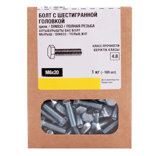 **Болт** — это специализированный метиз, предназначенный для скрепления мебельных элементов, а также других деревянных, фанерных и некоторых пластиковых конструкций. Этот болт соответствует стандарту DIN 933, что гарантирует его качество и надежность. Основное назначение: скрепление мебельных элементов при помощи гайки с шайбой, сборка бытовых, офисных и промышленных предметов мебели, использование в приборостроении и машиностроении, применение в строительных работах для крепления деревянных и фанерных конструкций. Возможно использование для скрепления с металлическими основаниями. ### Особенности: - размер: М6 x 20 мм, где М6 обозначает диаметр резьбы, а 20 мм — длину болта; - материал изготовлении — оцинкованная сталь; - полукруглая с подголовником квадратной формы предотвращает прокручивание болта в материале; - головка практически не выступает над поверхностью и не имеет острых углов, что удобно при эксплуатации мебели; - легко монтируется как ручным, так и электрическим инструмен