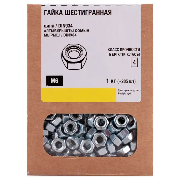 Гайка шестигранная DIN 934 6x10 мм оцинкованная 1 кг