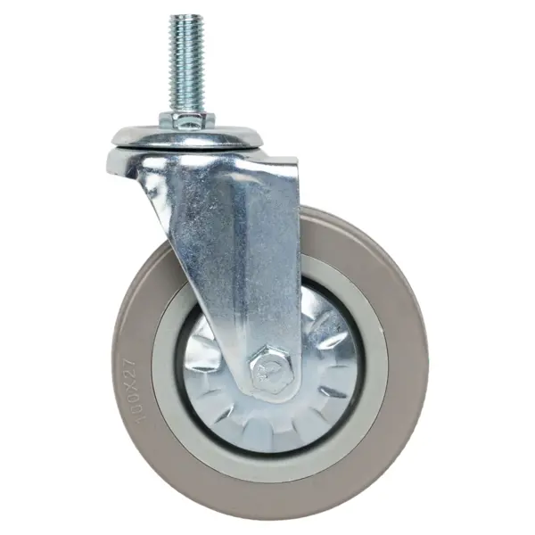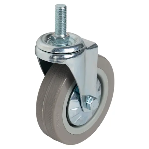 **Колесо поворотное** — это специализированное мебельное колесо, предназначенное для обеспечения мобильности и удобства перемещения различных предметов мебели и оборудования. Это колесо используется для оснащения тележек, столиков, тумб и другой мебели, обеспечения легкого перемещения оборудования внутри и снаружи помещений, использования на твердых полах, таких как ламинат, паркет или плитка, обеспечения плавного и легкого поворота без необходимости торможения. ### Особенности: - колесо способно выдерживать до 70 кг, что делает его подходящим для использования с тяжелыми предметами и оборудованием; - диаметр колеса в 100 мм — оптимальный размер для обеспечения устойчивости и плавности хода; - наличие поворотного механизма позволяет легко маневрировать и поворачивать предметы без необходимости остановки; - колесо не оснащено тормозом, что позволяет легко перемещать предметы без дополнительных усилий; - шина изготовлена из термопласта, что обеспечивает долговечность и устойчивость к из