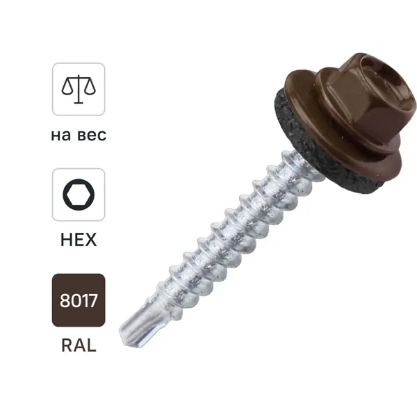 Саморезы кровельные по дереву DILWIS оцинкованные с буром 4.8x35 мм на вес RAL 8017