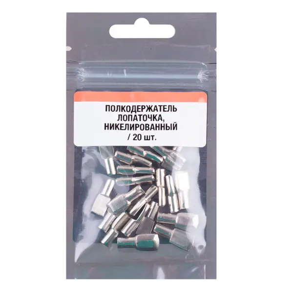 **Полкодержатель лопаточка** — это специализированная мебельная фурнитура, предназначенная для надежного крепления полок в корпусной мебели. Эта деталь крепежной системы обеспечивает устойчивость и надежность фиксации полок, что делает ее незаменимой при создании различных мебельных конструкций. ### Особенности: - размеры: диаметр монтажного отверстия — 5 мм, длина крепежного элемента — 19 мм; - изготовлены из прочного металла, что обеспечивает долговечность и устойчивость к нагрузкам; - никелированное покрытие придает изделию серебристый цвет и защищает от коррозии; - в упаковке 20 полкодержателей, что достаточно для оснащения нескольких полок; - легкая и быстрая установка без необходимости использования специальных инструментов; - имеет высокую прочность и устойчивость к механическим нагрузкам; - подходят для использования в различных типах мебели: шкафы, гардеробные, полки в тумбах.