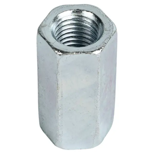 **Гайка переходная** — это крепежный элемент, изготовленный из оцинкованной стали, соответствующий стандарту DIN 6334. Она представляет собой удлиненную шестигранную гайку-втулку. Предназначена для соединения резьбовых элементов различных диаметров. Используется как переходное звено в резьбовых соединениях для обеспечения совместимости различных крепежных элементов. Применяется в строительных и монтажных работах, машиностроении и производственных процессах. ### Особенности: