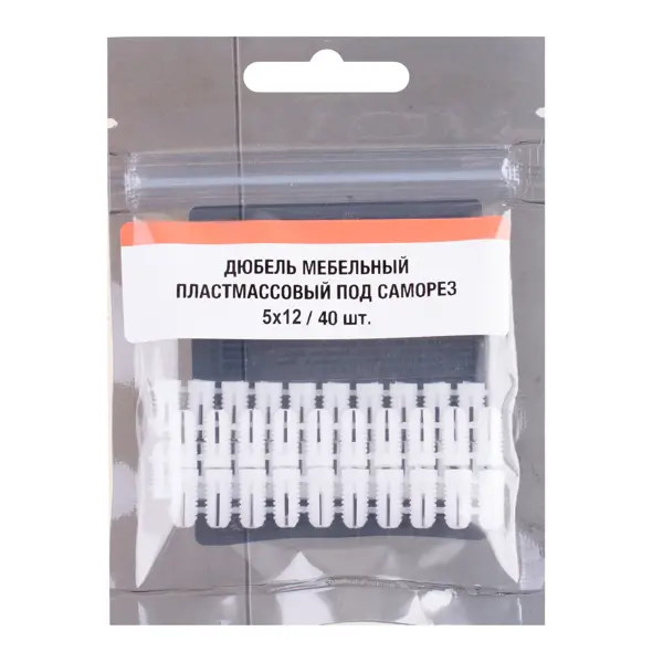 Футорка под саморез 5x12 мм пластик цвет белый 40 шт.
