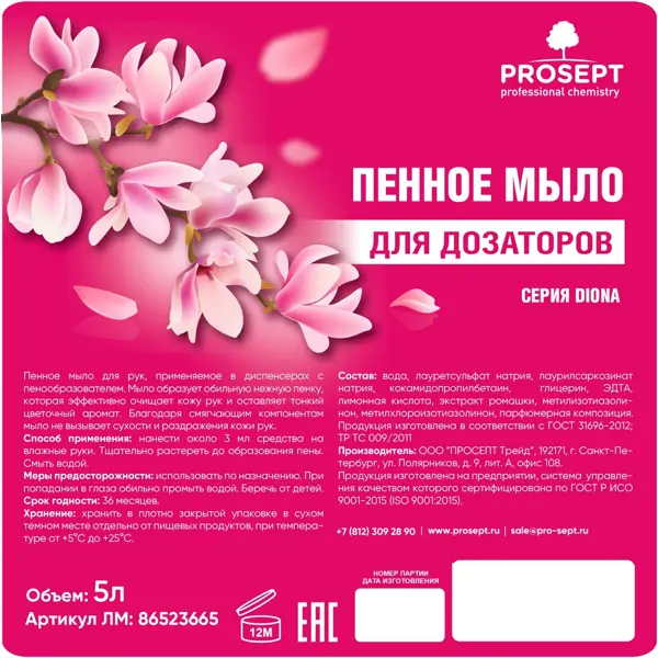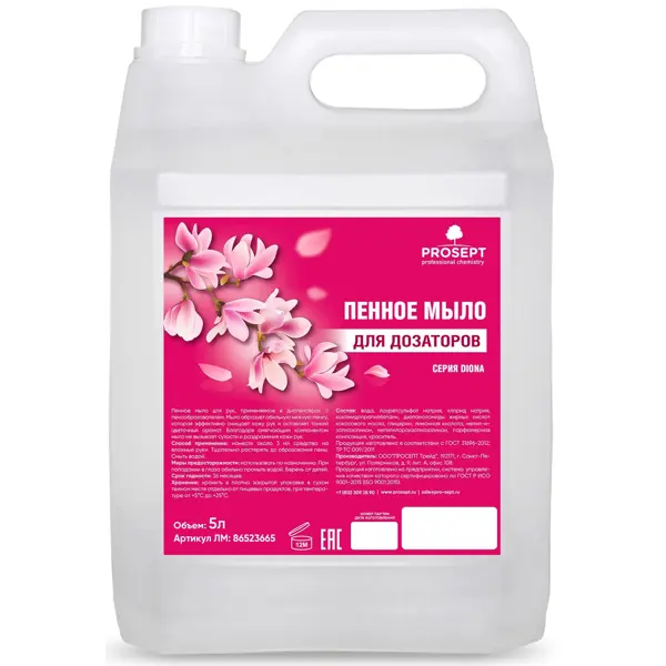 **Мыло пенное для дозаторов Prosept** предназначено для диспенсеров с пенообразованием. Используется для мытья рук. Мыло бережно очищает кожу от загрязнений, не сушит ее и не вызывает раздражений. Может использоваться дома, в офисах, заведениях общественного питания. ### Особенности: - объем – 5 л; - упаковка – канистра; - консистенция – пена; - предназначение – для дозаторов.