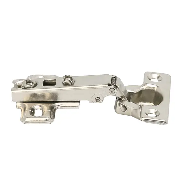 **Мини-петля мебельная Вкладная MF-402А** предназначена для установки с расчетом того, чтобы торец корпуса выступал сбоку фасада. Изготовлена из хромированной стали. Элементы крепежа идут в комплекте. ### Особенности: - модель — Slide-on; - диаметр чаши — 50 мм.