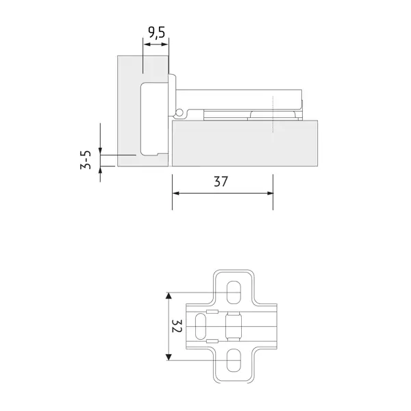 Минипетля мебельная накладная MF-402A, Slide-on, 50 мм, сталь