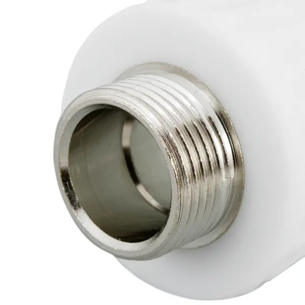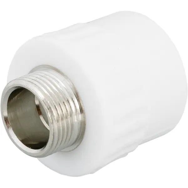 **Муфта комбинированная** — фитинг для перехода с полипропиленовой трубы диаметром 32 мм на металлическую с резьбой 3/4". Соединение — наружное/под пайку. Муфта используется в системах отопления, кондиционирования, горячего и холодного водоснабжения, в том числе в трубопроводах с питьевой водой. Основной материал — полипропилен белого цвета. Длина изделия 5,3 см. Фитинг эксплуатируется при температуре жидкости до 90 °C и давлении до 25 бар.