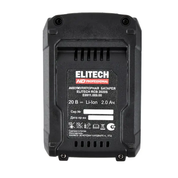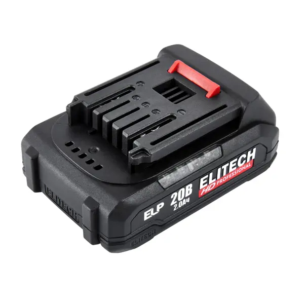 **Аккумулятор Elitech RCB 2020S EHD** - это литий-ионный (Li-Ion) источник питания для аккумуляторного инструмента серии HD Professional. Является частью универсальной платформы ELP (Elitech Lithium Platform). Предназначен для обеспечения автономной работы электроинструмента, замены традиционных сетевых инструментов, работы в местах без доступа к электричеству, использования в составе профессионального инструмента. ### Особенности: - напряжение батареи - 20 В, емкость - 2.0 А*ч; - конструкция - универсальный слайдер; - присутствует индикатор заряда; - оснащен системой контроля параметров батареи; - имеет встроенное принудительное охлаждение; - обеспечивает сниженное тепловое воздействие на элементы; - отличается высокой надежностью в экстремальных условиях и устойчивостью к перепадам температуры; - защищен от пыли, влаги и перегрузок; - совместим с инструментами серии HD Professional, включая дрели и шуруповерты, перфораторы, болгарки, реноваторы, цепные пилы.