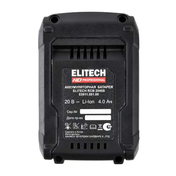 **Аккумулятор Elitech RCB 2040S EHD** - это литий-ионный (Li-Ion) источник питания для аккумуляторного инструмента серии HD Professional. Является частью универсальной платформы ELP (Elitech Lithium Platform). Предназначен для обеспечения автономной работы электроинструмента, замены традиционных сетевых инструментов, работы в местах без доступа к электричеству, использования в составе профессионального инструмента. ### Особенности: - напряжение батареи - 20 В, емкость - 4.0 А*ч; - конструкция - универсальный слайдер; - присутствует индикатор заряда; - оснащен системой контроля параметров батареи; - имеет встроенное принудительное охлаждение; - обеспечивает сниженное тепловое воздействие на элементы; - отличается высокой надежностью в экстремальных условиях и устойчивостью к перепадам температуры; - защищен от пыли, влаги и перегрузок; - совместим с инструментами серии HD Professional, включая дрели и шуруповерты, перфораторы, болгарки, реноваторы, цепные пилы.