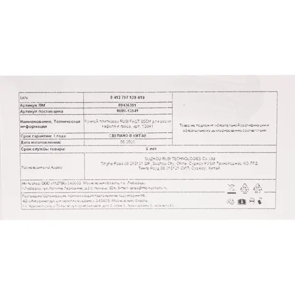- Основание плиткореза оснащёно мягкой амортизирующей накладкой из вспененного синтетического материала, которая предотвращает нежелательные перемещения плитки во время работы. **БЕРЕЖНО К ЛЮДЯМ, БЕРЕЖНО К ПРИРОДЕ** - Этот товар имеет бесплатную расширенную гарантию от 3 лет. Благодаря