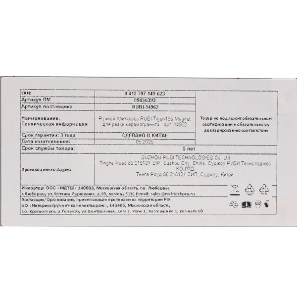 **Ручной плиткорез RUBI Tiger-185 Magnet** предназначен для точной резки любого типа керамической плитки (кафеля, керамогранита и других видов).
