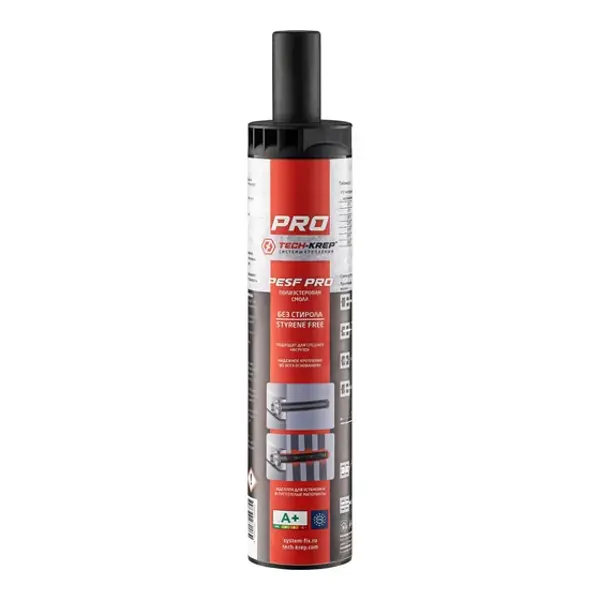 **Анкер химический с насадкой Tech-Krep Pesf Pro** — это двухкомпонентный состав на основе полиэстеровой смолы, предназначенный для надежного крепления металлических элементов в различных строительных основаниях. Основное назначение: установка металлических элементов крепежа в бетон, монтаж в полнотелый и пустотелый кирпич, крепление в ячеистые бетоны (газобетон, пенобетон, керамзитобетон), установка лестниц, ограждений, карнизов, монтаж сантехнического оборудования, монтаж систем трубопроводов и вентиляции, крепление конструкций средней тяжести. ### Особенности: - объем состава — 300 мл; - основа состава — полиэстеровая смола; - время схватывания — от 2 до 18 минут (зависит от температуры основания); - температура монтажа — от 5 до 30 °C; - температурный режим эксплуатации — от -40 до 80 °C; - максимальная глубина анкеровки — до 210 мм; - подходит для внутренних работ за счет полного отсутствия неприятного запаха; - может применяться в пустотелых основаниях; - для монтажа используетс