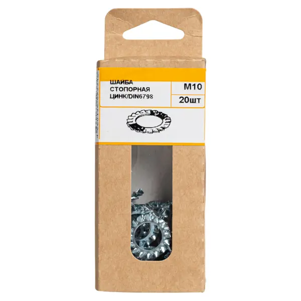 **Шайба зубчатая** — это специализированный крепежный элемент, изготовленный из нержавеющей стали, который используется для предотвращения самопроизвольного раскручивания резьбовых соединений. Благодаря наличию зубцов, такие шайбы обеспечивают надежное фиксирование и повышенную устойчивость к внешним воздействиям. ### Особенности: - М10 — стандартный размер, подходящий для болтов и гаек с резьбой М10; - материал изготовления — нержавеющая сталь, устойчивая к коррозии и воздействию окружающей среды; - форма — зубчатая (форма А — наружные зубья); - соответствует международным стандартам DIN 6798 и ГОСТ 10463-81; - количество в упаковке — 20 шт.