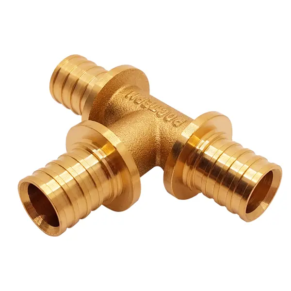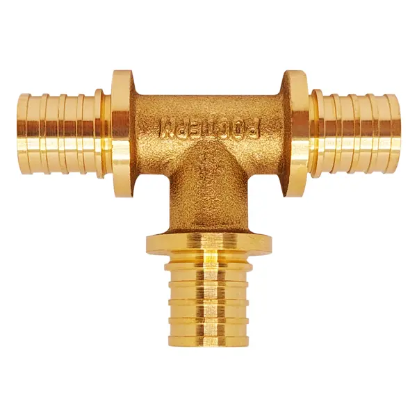 **Тройник переходной Ростерм** - надежный фитинг для создания разветвлений в системах водоснабжения и отопления. Конструкция позволяет соединять трубы разного диаметра, обеспечивая эффективное распределение потока рабочей среды. Особенностью модели является отсутствие резиновых уплотнительных колец - герметичность соединения обеспечивается за счет прижатия стенки трубы к штуцеру специальной надвижной гильзой. Это повышает надежность и долговечность фитинга. ### Особенности: - изготовленный из прочной латуни, тройник отличается высокой устойчивостью к коррозии и механическим нагрузкам; - материал гарантирует длительный срок службы и надежность эксплуатации в различных условиях; - фитинг рассчитан на работу при температуре до 110°C, что делает его подходящим как для систем горячего водоснабжения, так и для отопительных контуров; - универсальная конструкция позволяет использовать тройник в различных типах трубопроводных систем; - тройник подходит для скрытого монтажа, в том числе под стя