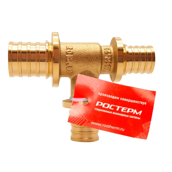 **Тройник переходной Ростерм** - надежный фитинг для создания разветвлений в системах водоснабжения и отопления. Конструкция позволяет соединять трубы разного диаметра, обеспечивая эффективное распределение потока рабочей среды. Особенностью модели является отсутствие резиновых уплотнительных колец - герметичность соединения обеспечивается за счет прижатия стенки трубы к штуцеру специальной надвижной гильзой. Это повышает надежность и долговечность фитинга. ### Особенности:
