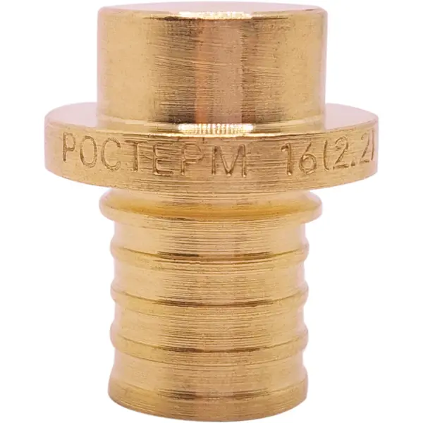 **Заглушка РОСТерм** — это фитинг, предназначенный для герметичного перекрытия труб в системах отопления и водоснабжения. Она используется для надежного завершения трубопровода, обеспечивая герметичность и долговечность системы. Заглушка применяется для герметичного перекрытия труб из сшитого полиэтилена или фитингов диаметром 16 мм. Используется в системах холодного и горячего, радиаторного и напольного отопления, обеспечения герметичности и защиты трубопровода от протечек. ### Особенности: - изготовлена из высококачественной латуни, устойчивой к коррозии и минеральным отложениям, срок службы изделия составляет до 50 лет; - уплотнителем выступает сам материал трубы, что исключает необходимость использования резиновых уплотнительных колец, герметичность достигается за счет прижатия стенки трубы к штуцеру фитинга надвижной гильзой; - установка производится стандартным инструментом для аксиальных систем, что ускоряет процесс монтажа; - фитинги подходят для скрытого монтажа, в том числе
