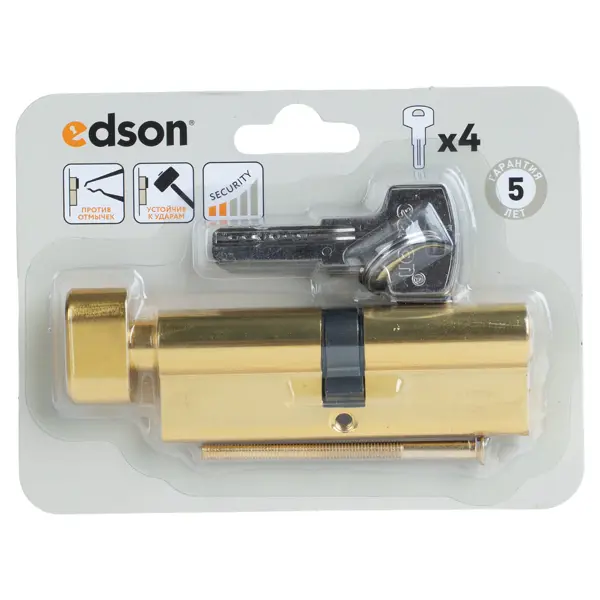 **Цилиндр EDS-CYL** — это механизм замка, предназначенный для установки в двери. Он имеет перфорированный ключ, который обеспечивает высокую секретность и защиту от взлома. Также цилиндр оснащен поворотной ручкой (вертушкой), которая позволяет открывать дверь без использования ключа. Этот цилиндр подходит для установки в межкомнатные двери, а также в входные двери с низкой проходимостью. ### Особенности: - размер: 45 x 45 мм; - материал изготовления — латунь; - количество ключей — 4. **БЕРЕЖНО К ЛЮДЯМ, БЕРЕЖНО К ПРИРОДЕ** - Этот товар имеет бесплатную расширенную гарантию от 3 лет. Благодаря увеличенному периоду бесплатного сервисного обслуживания вы продлеваете срок службы товара, экономите на покупке нового в случае поломки и снижаете влияние на окружающую среду.