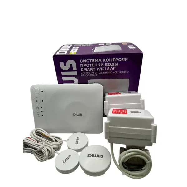 **Система DILWIS Smart Wi‑Fi** - современное интеллектуальное решение для предотвращения затоплений и минимизации ущерба от протечек воды. Устройство автоматически перекрывает подачу воды при обнаружении влаги и позволяет контролировать состояние водопровода удаленно через мобильное приложение. Благодаря Wi‑Fi‑подключению система интегрируется в экосистему умного дома, обеспечивая круглосуточную защиту без постоянного присутствия пользователя. Комплект подойдет для установки в квартирах, частных домах, офисах и других помещениях - везде, где важна высокая степень безопасности инженерных коммуникаций и возможность дистанционного мониторинга. ### Преимущества: - комплектация из 2 кранов и 3 датчиков позволяет защитить сразу несколько потенциально опасных зон (например, ванную, кухню и подсобное помещение), обеспечивая комплексную безопасность ключевых точек водопотребления; - диаметр подключения в 3/4″ соответствует стандартному размеру бытовых водопроводных труб, что упрощает монта