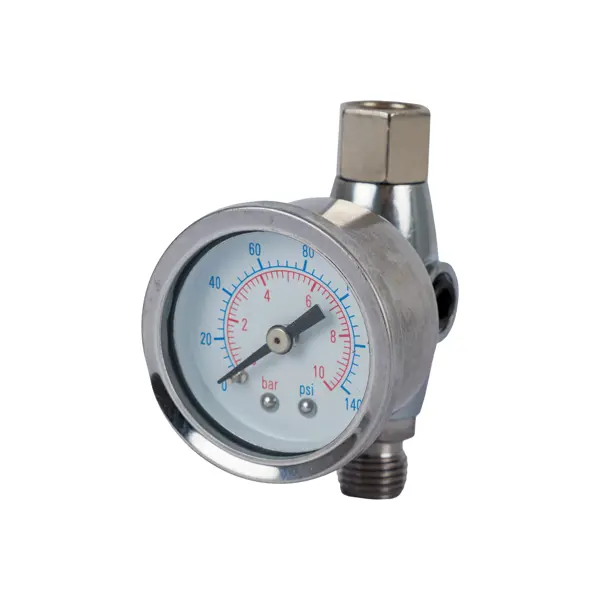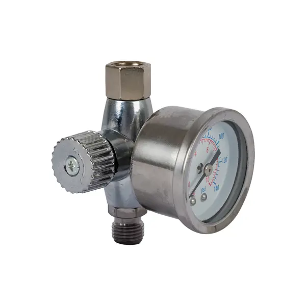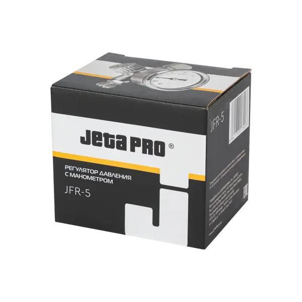 **Редуктор давления Jeta Pro JFR5** представляет собой комплексное устройство для подготовки сжатого воздуха, включающее в себя функции регулировки давления, фильтрации и контроля. Прибор оснащен встроенным манометром для визуального контроля давления в системе. Предназначен для очистки сжатого воздуха от влаги и механических примесей, а также установки и поддержания необходимого давления в пневмосистеме. Устройство устанавливается на входе пневмоинструмента и обеспечивает его надежную работу. ### Особенности: - фильтрующий элемент имеет степень очистки 5 микрон, что позволяет эффективно задерживать крупные частицы загрязнений; - рабочее давление - до 10 бар; - оснащен соединениями с наружной и внутренней резьбой 1/4 дюйма; - имеет специальный клапан для слива конденсата, который активируется вручную; - встроенный манометр предусмотрен для точного контроля давления; - подходит для использования с различными пневмоинструментами, включая краскопульты; - конусное соединение обеспечивает