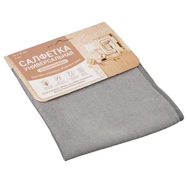 **Салфетка для уборки** изготовлена из качественного материала, который отлично подходит для различных видов уборки. Изделие можно использовать как для сухой, так и для влажной уборки в сочетании с различными чистящими средствами. Салфетка эффективно удаляет пыль, грязь и жир с любых поверхностей. ### Особенности: - благодаря оптимальному размеру салфетка удобно лежит в руке и позволяет эффективно очищать как небольшие, так и крупные поверхности; - серый цвет практичен и менее марок при наличии загрязнений во время использования; - материал салфетки обладает хорошими впитывающими свойствами и прекрасно справляется с удалением пыли, влаги и загрязнений; - салфетка не оставляет разводов и ворсинок на очищенных поверхностях, что особенно важно при уборке стеклянных и глянцевых элементов; - прочный материал обеспечивает длительный срок службы изделия при правильном уходе; - салфетку можно стирать и использовать многократно, что делает ее экономичным решением для домашнего хозяйства; - ком