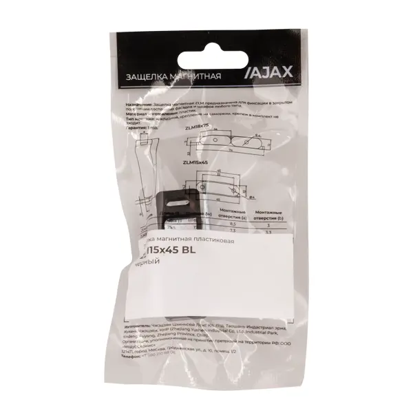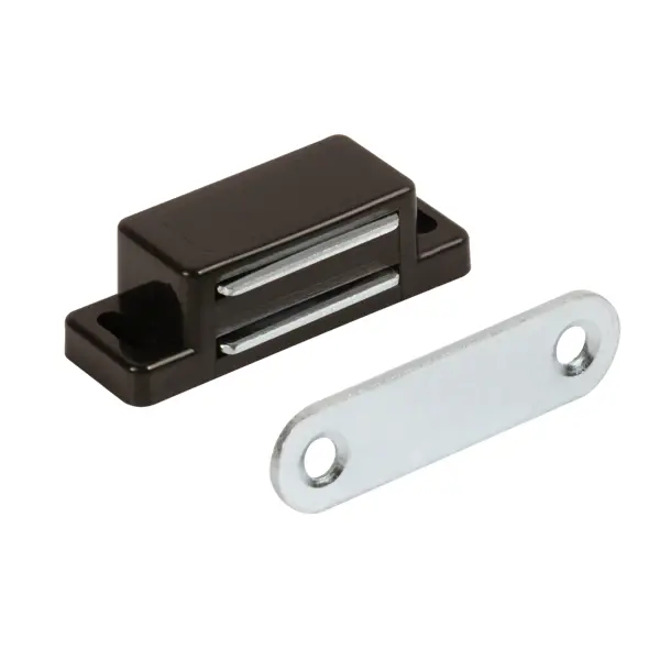 **Защелка магнитная** - мебельное крепежное изделие, изготовленное из комбинации пластика и металла. Устройство предназначено для автоматического фиксирования мебельных дверец в закрытом положении без использования дополнительных механизмов. Надежно удерживает двери шкафов, ящиков и других мебельных конструкций в закрытом состоянии. Благодаря магнитному механизму, дверца мягко и бесшумно закрывается, что особенно важно для офисной и домашней мебели. ### Особенности: - конструкция защелки включает пластиковый корпус и встроенный магнитный элемент, который обеспечивает надежное сцепление при закрытии; - компактные размеры в 15 x 45 мм позволяют устанавливать изделие на различные типы мебели без необходимости существенной доработки конструкции; - черный цвет корпуса гармонично сочетается с большинством мебельных фасадов; - защелка не требует дополнительного обслуживания и сохраняет свои свойства при нормальной эксплуатации; - монтаж осуществляется с помощью крепежных элементов, входящих