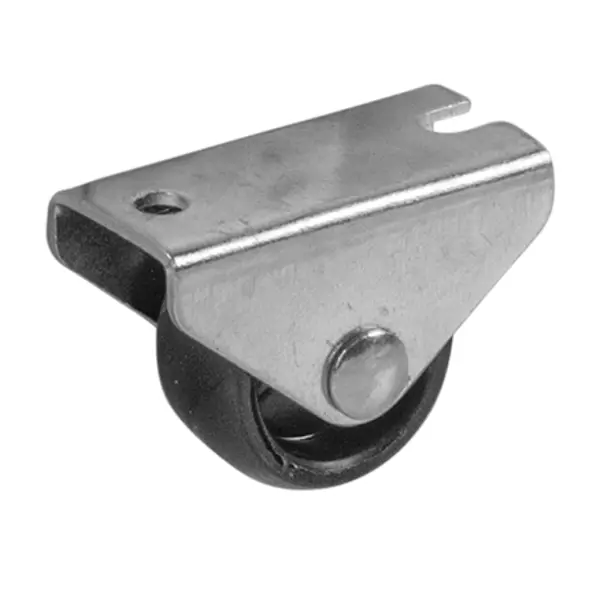 **Колесо мебельное** - элемент фурнитуры, предназначенный для обеспечения мобильности различных предметов мебели. Устройство используется при изготовлении и ремонте мебели для облегчения перемещения различных конструкций. ### Особенности: - позволяет легко перемещать мебель по напольному покрытию без его повреждения; - особенно актуально для установки на выдвижные ящики, пуфы, кресла, журнальные столики и другую мебель с небольшой нагрузкой; - конструкция колеса включает стальную ось и крепежную пластину, а вращающаяся часть выполнена из прочного пластика белого цвета; - неповоротный механизм обеспечивает прямолинейное движение, что особенно важно для стабильной работы выдвижных механизмов; - максимальная нагрузка - до 20 кг при равномерном распределении веса%; - бесшумное движение обеспечивается резиновым покрытием; - монтаж осуществляется с помощью саморезов через специальные отверстия в крепежной пластине; - диаметр колеса - 25 мм; - цвет - черный.
