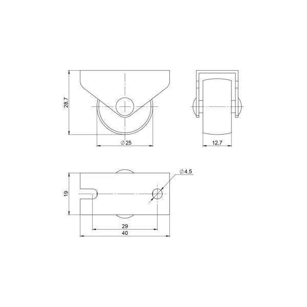 Колесо мебельное неповоротное без тормоза 25 мм до 20 кг цвет черный