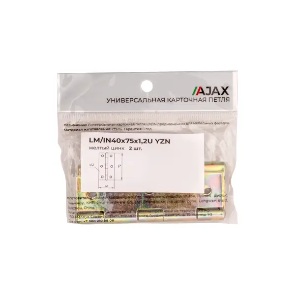 Петля карточная универсальная оцинкованная 40x75x1.2 мм 2 шт.