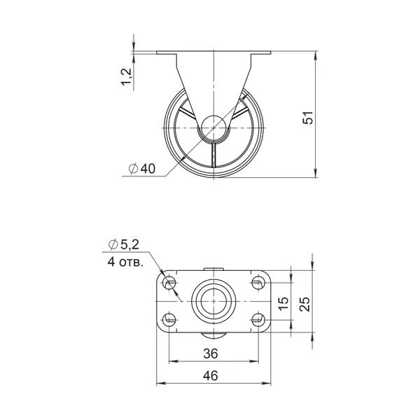 **Колесо мебельное** - элемент фурнитуры, предназначенный для обеспечения мобильности различных предметов мебели. Устройство используется при изготовлении и ремонте мебели для облегчения перемещения различных конструкций. ### Особенности: - позволяет легко перемещать мебель по напольному покрытию без его повреждения; - особенно актуально для установки на выдвижные ящики, пуфы, кресла, журнальные столики и другую мебель с небольшой нагрузкой; - конструкция колеса включает стальную ось и крепежную пластину, а вращающаяся часть выполнена из прочного пластика белого цвета; - неповоротный механизм обеспечивает прямолинейное движение, что особенно важно для стабильной работы выдвижных механизмов; - максимальная нагрузка - до 50 кг при равномерном распределении веса%; - бесшумное движение обеспечивается резиновым покрытием; - монтаж осуществляется с помощью саморезов через специальные отверстия в крепежной пластине; - диаметр колеса - 40 мм; - цвет - белый.
