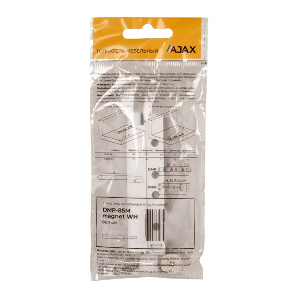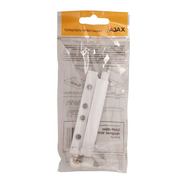 **Толкатель мебельный** - практичное решение для обустройства кухонных гарнитуров, шкафов-купе, офисных стеллажей и другой мебели, где требуется удобное открывание фасадов без использования ручек. Толкатель легко монтируется на мебельные фасады без необходимости специальных инструментов. Подходит для установки как на новые конструкции, так и при модернизации существующей мебели. Магнит в конструкции толкателя обеспечивает комфортное использование мебели и продлевает срок службы фурнитуры за счет равномерного распределения нагрузки при открывании и закрывании. ### Особенности: - изготовлен из прочного металла, обеспечивающего долговечность и надежность в эксплуатации; - компактные размеры позволяют устанавливать его в различные мебельные фасады, обеспечивая плавное и бесшумное открывание ящиков и дверец; - белое защитное покрытие придает изделию эстетичный внешний вид и защищает от коррозии; - размеры: 85 х 14 мм.
