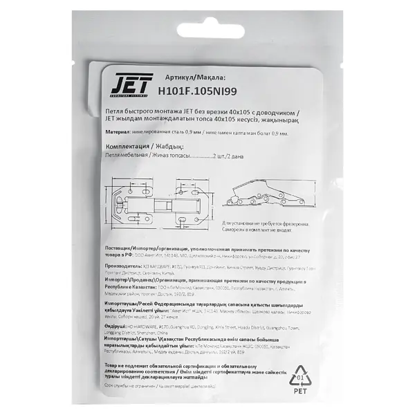 **Петля быстрого монтажа Jet** - это мебельный крепежный элемент, предназначенный для установки дверей шкафов, тумбочек и другой корпусной мебели. Комплект включает две петли, что достаточно для монтажа одной распашной двери. Обеспечивает надежное крепление мебельных дверей и их плавное открывание-закрывание. Петля позволяет быстро и без сложной врезки установить дверцу на корпус мебели. ### Особенности: - материал изготовления - прочная сталь, которая обеспечивает долговечность и надежность конструкции; - имеет специальное покрытие серебристо-серого цвета, защищающее от коррозии; - система быстрого монтажа существенно упрощает установку по сравнению с традиционными петлями; - предусматривают возможность регулировки положения двери после установки; - рассчитана на регулярные нагрузки при повседневном использовании; - подходят как для домашней, так и для офисной мебели; - размеры: 40 x 105 мм.
