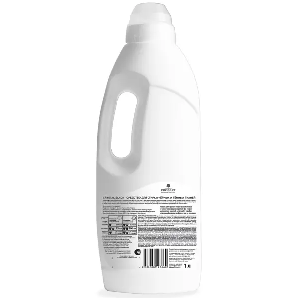 **Гель для стирки чёрных и тёмных тканей Prosept** — жидкое моющее средство бережно отстирывает загрязнения, защищает ткань от выцветания, препятствует образованию катышков, восстанавливает и защищает насыщенность черного цвета. **Преимущества:** - хорошо растворяется в воде любой жесткости и температуры; - биоразлагаемость более 95%; - не содержит фосфатов; - экономичный расход; - нейтральный запах. **Способ применения:** - Перед использованием средство взболтать. - При помощи колпачка от бутылки залить необходимое количество средства в отсек для моющих средств. **Состав:** вода, аПАВ, нПАВ менее 5%,поликарбоксилаты менее 5%,фосфонаты менее 5%, функциональные добавки, парфюмерная композиция, консервант.