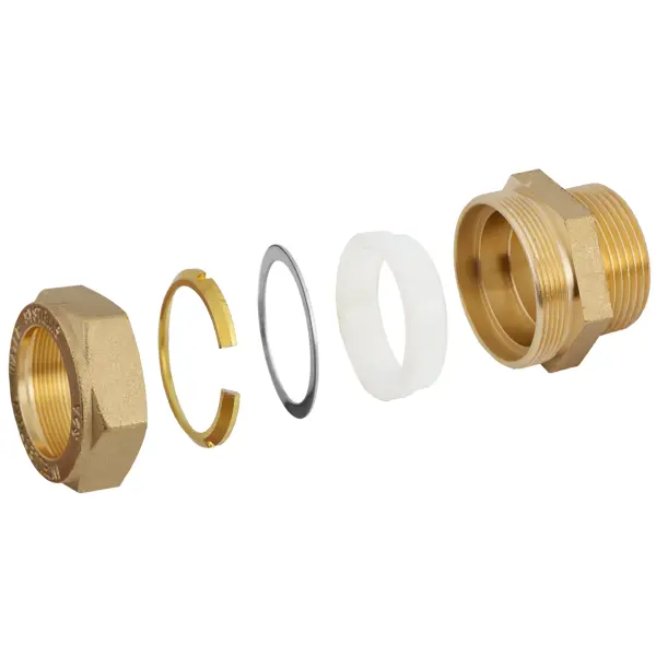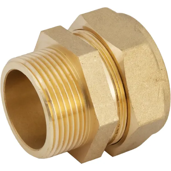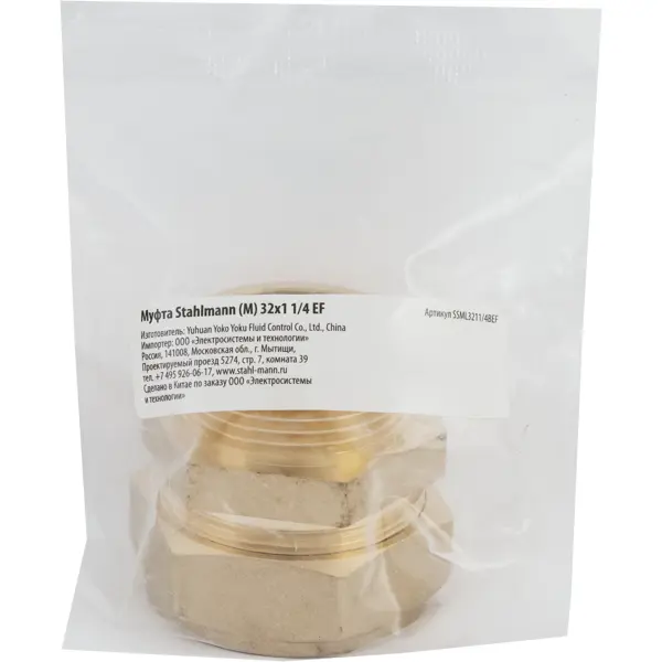 **Муфта обжимная Stahlmann** используется как переходник с систем нержавеющих гофрированных труб на другие. Соединение осуществляется при помощи резьбы. ### Особенности: - тип резьбы — наружная; - размер — 32 х 1 1/4" мм; - изготовлена из латуни.